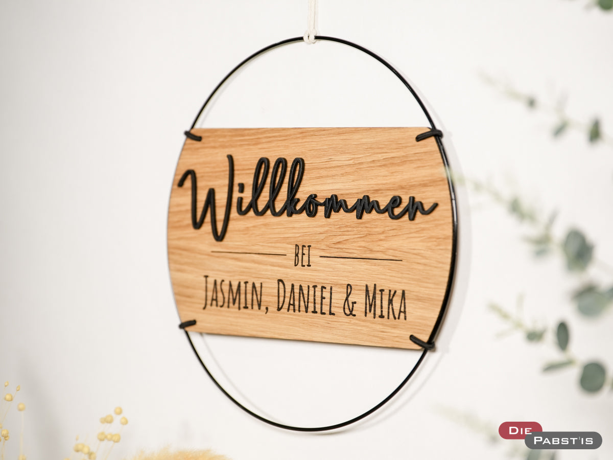 Mach deinen Eingangsbereich zu etwas ganz Besonderem mit unserem Willkommensschild für die Haustür. Mit diesem dekorativen Highlight sorgst du für ein herzliches Willkommen und verleiht deinem Zuhause eine persönliche Note.